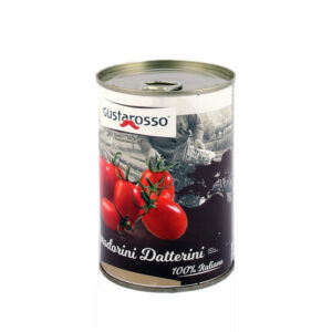 Die wegen ihrer Dattelform Datterini genannten kleinen, länglichen Tomaten zeichnen sich durch eine herrliche Süße und fleischige Textur aus. Sie werden mit größter Sorgfalt geerntet und sehr schnell weiterverarbeitet, um ihre Frische und Geschmacksintensität zu bewahren. Weil ihre Haut sehr fein ist, eignen sich Datteltomaten GUSTAROSSO 400g / 240g optimal für schnelle Saucen oder als Begleitung von Meeresfrüchten und Krustentieren.