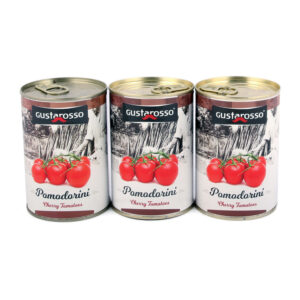 Kleine, süße und fruchtige Kirschtomaten bringen Abwechslung in die Küche. Ihr frischer Geschmack macht sie zu einer hervorragenden Ergänzung für viele Lebensmittel, Saucen und Salate. Wie alle unsere Tomaten werden Kirschtomaten während einem Tag geerntet und haltbar gemacht. Sie sind sanft geschält und mit einer samtigen Passata in dosen gepackt. Süß und frisch – wie der Sommer!